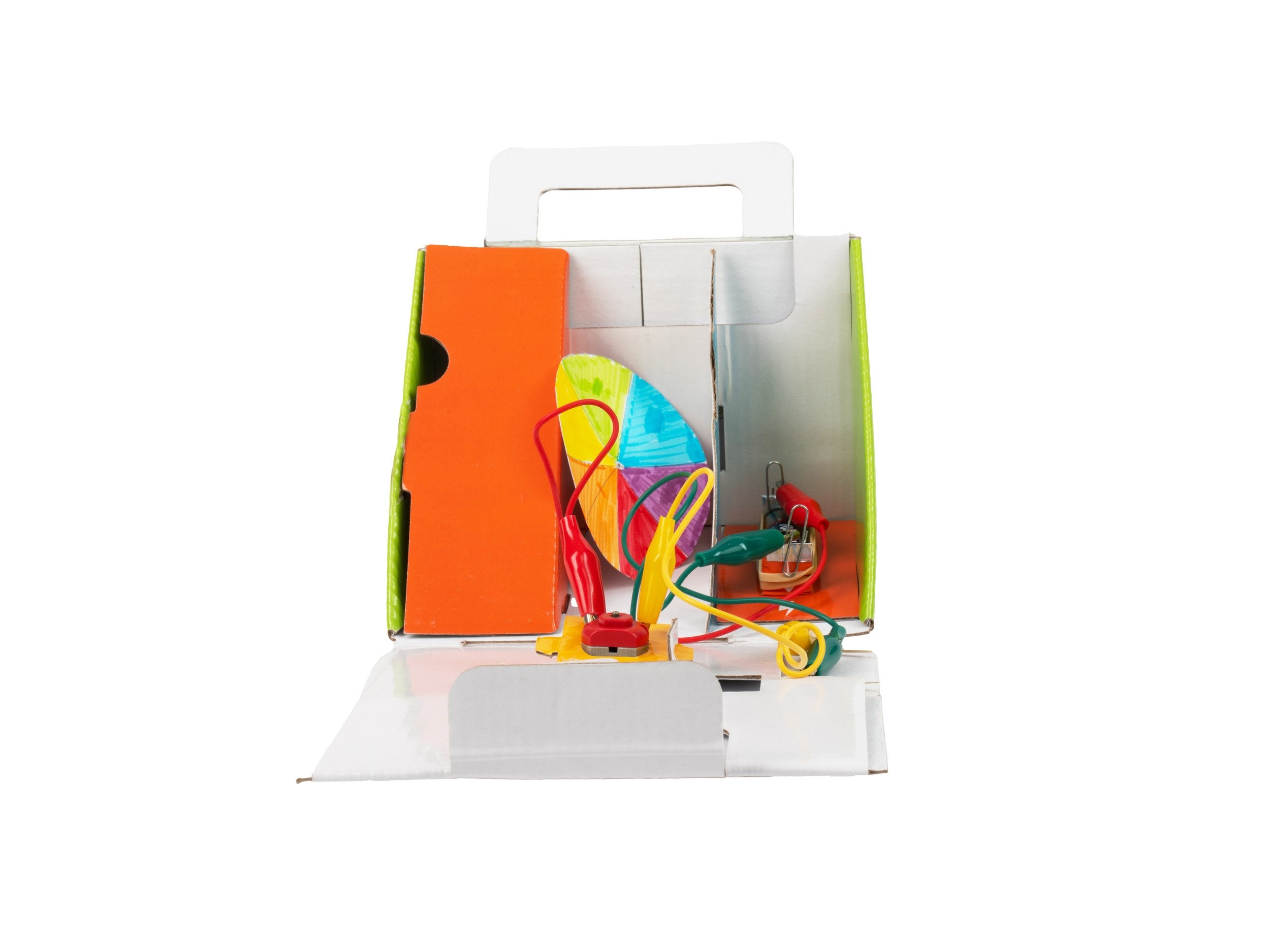 This DIY Spin Art kit is easy to assemble and fun to use! You will discover simple circuits, learn how to safely connect a motor to a battery, understand how batteries work, what switches do and learn about conductivity. Once your kit is assembled, take a piece of paper, draw patterns or dots on it and position it on your spin-art kit. Let the electricity flow and see what your pattern looks like as it spins away. Alternatively, position the paper on the motor attachment, start up the motor and gently use a pen to create patterns on the spinning paper. Notice what happens when you turn off the motor. Test it and have fun!