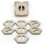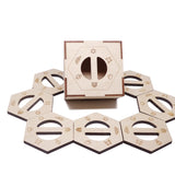 Ready for a challenge? Try and arrange the 7 hexagons so that all touching sides have matching numbers? Select one hexagon and put it in the center. Place the six remaining hexagons around the center hexagon so that the numbers on the edges of the outside hexagons match the numbers on the edges of the adjoining hexagons. All the edges where the hexagons touch must have matching numbers.