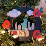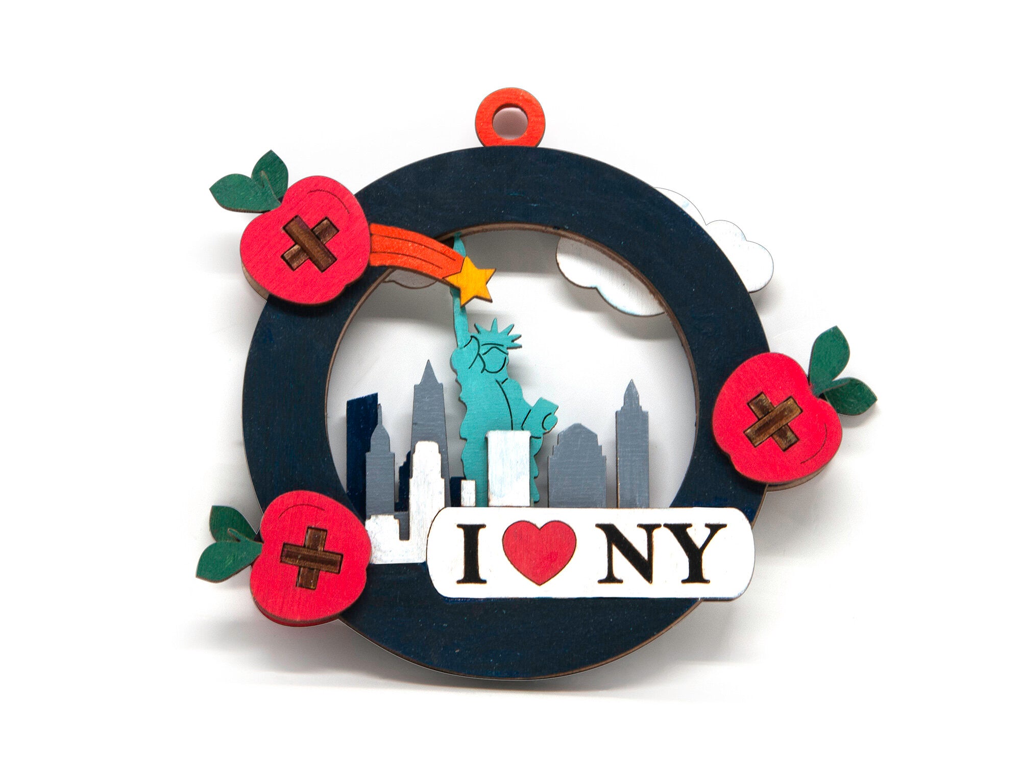 Made with love and attention to detail, this modern ornament is the perfect addition to your Christmas tree. Admire the iconic NYC skyline and Lady Liberty. Use your creativity and give it your own personal touch with paint or markers.
