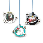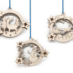 Layered pieces of sanded laser cut baltic birch wood make up this modern take on a classic ornament. Your bundle comes with our 3 Christmas themed ornaments: Reindeer and Pine tree, Santa and Sleigh and the Snowman and Snowflake. Have a family evening and create memorable memories as you spend time together coloring and assembling the ornaments.