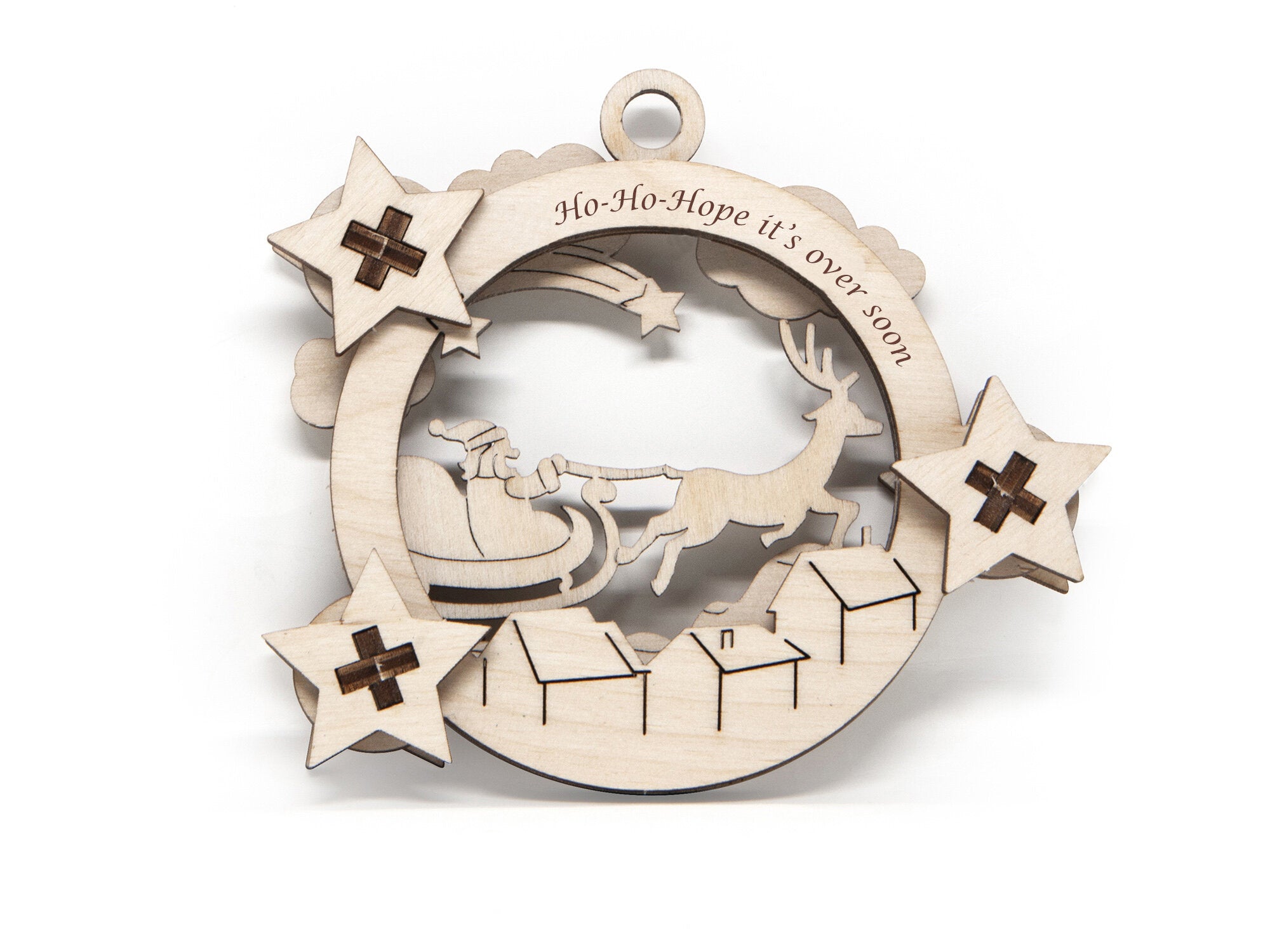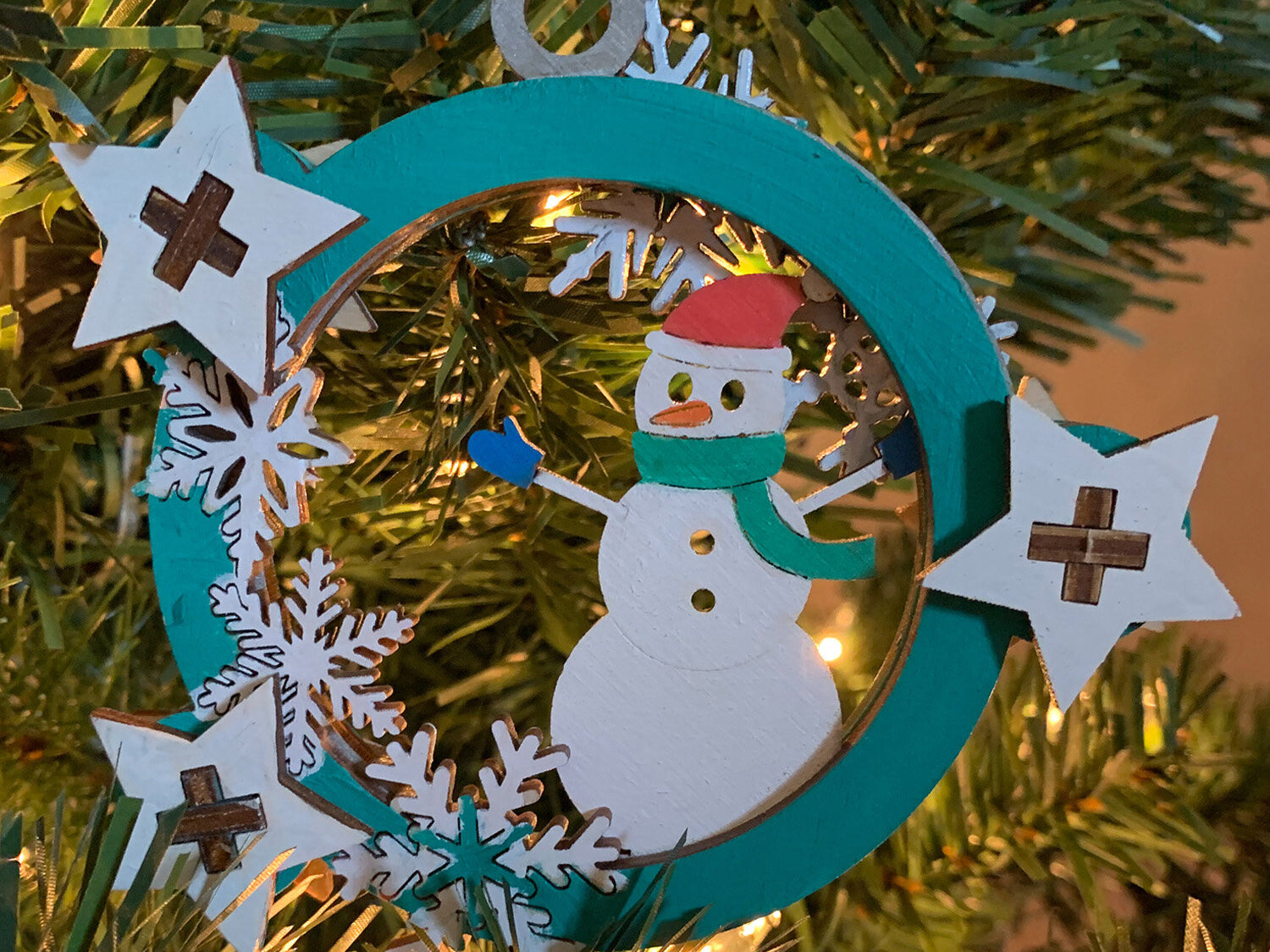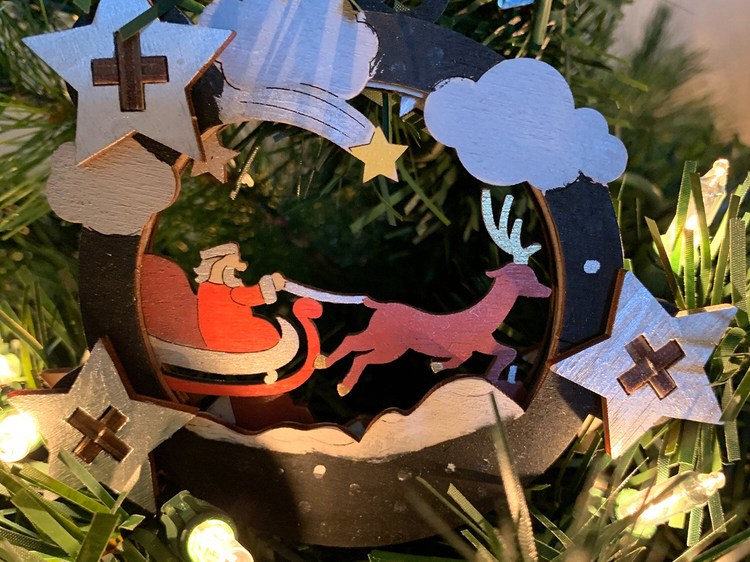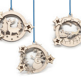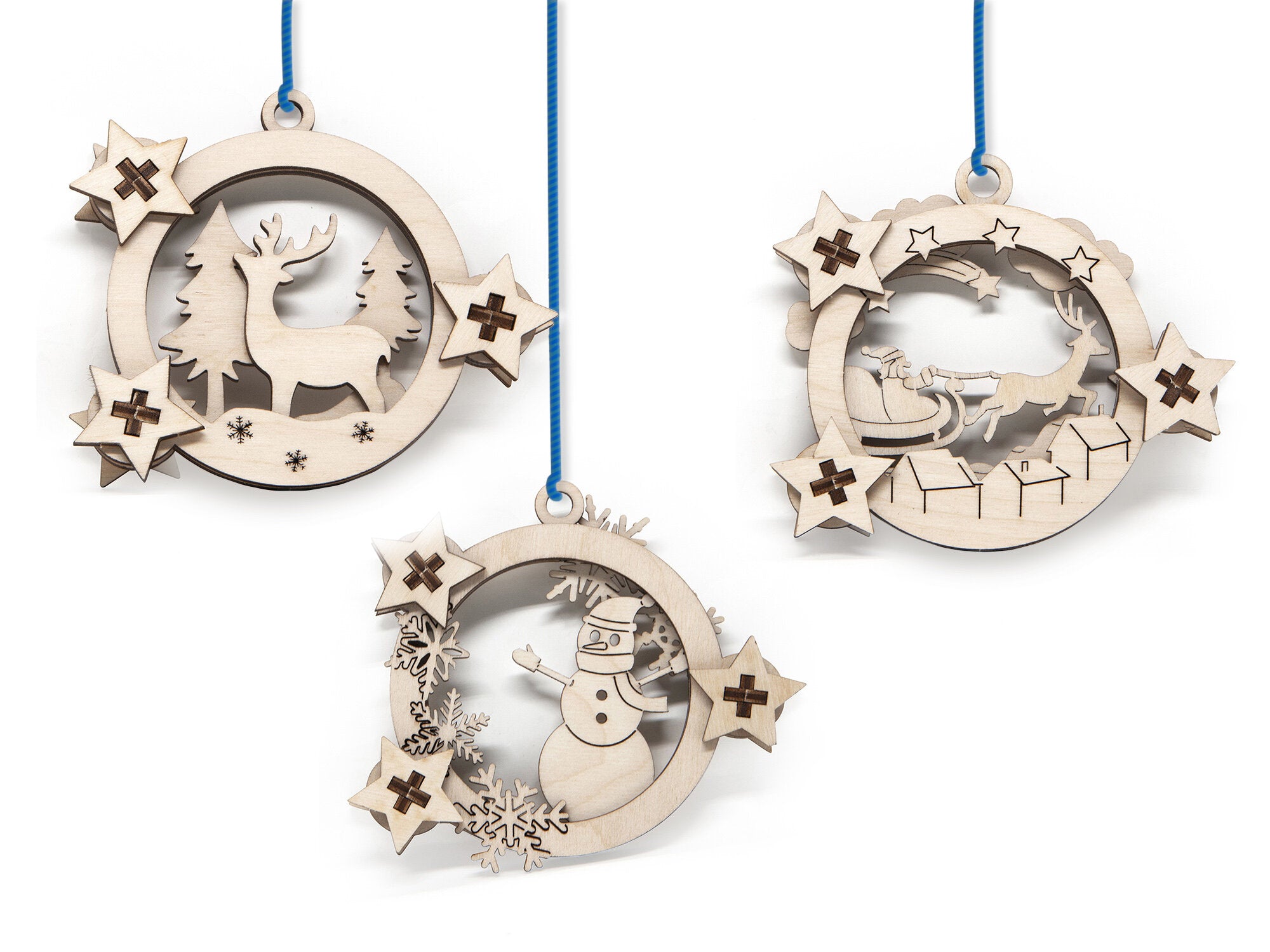 • Each ornament is composed of 3 Laser-cut birch plywood hand sanded stacking pieces
